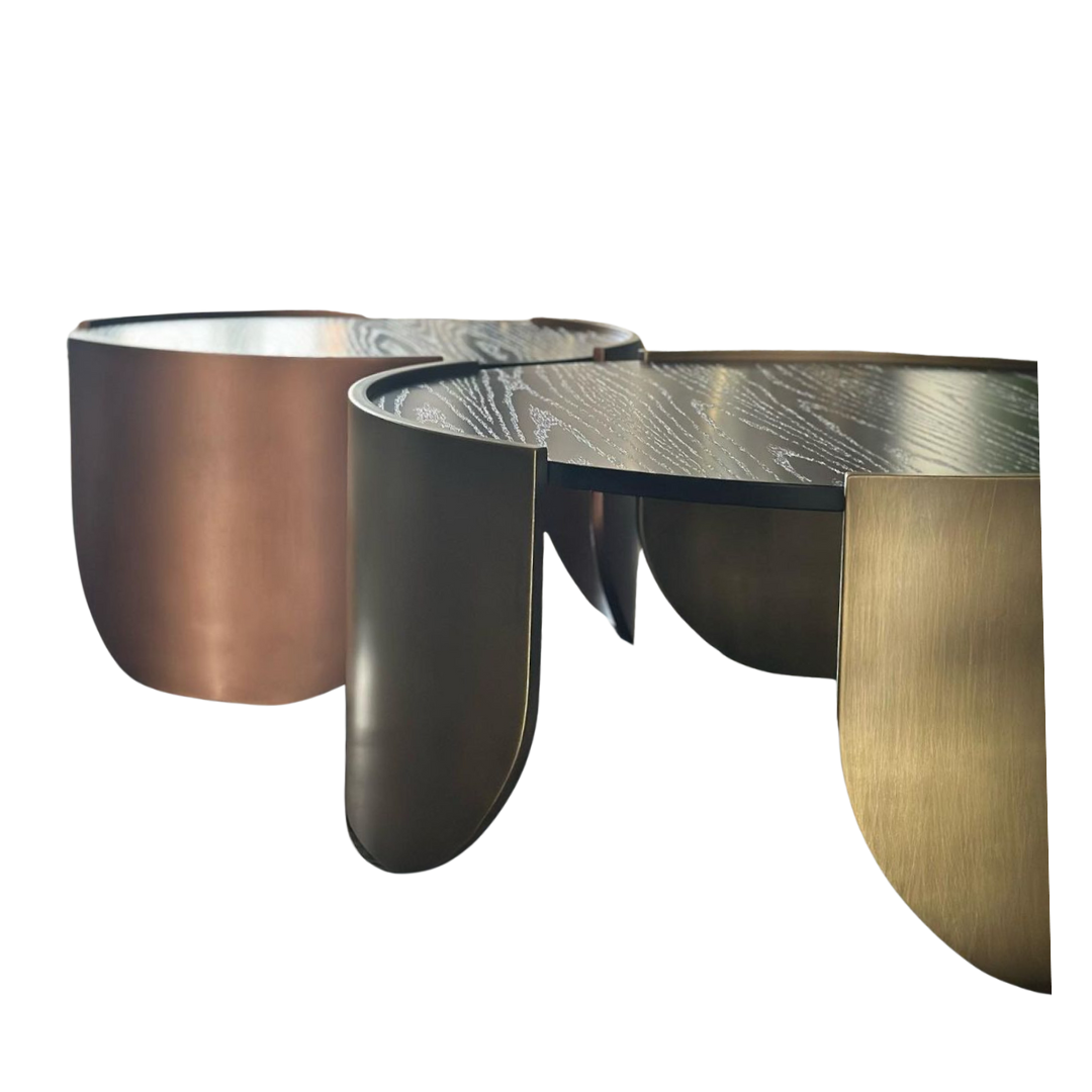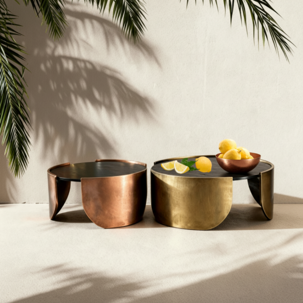 Tamamen MDF den oluşan Lunare 2’li Orta Sehpa’nın gövdeleri özel eskitme gold ve bakır cilalarıyla renklendirilmiştir. Tablalarındaki meşe kaplama yüzey ile dokuda derinlik sağlanan ürün, ayrı kullanımlarıyla iki yan sehpa olarak da kullanılabilir fonksiyonelliği sağlar.