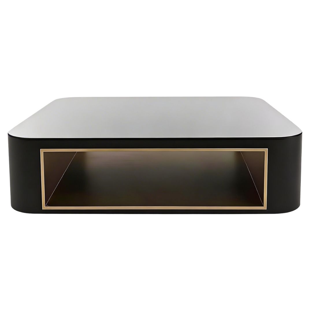 Kare formu yumuşatılmış kenarlarıyla dikkat çekerken, alt bölümü dergilik olarak kullanılabilecek pratik bir raf sunar. MDF üzeri parlak siyah gövde, gold ince ayrıntılarla tamamlanarak şık bir birleşim yaratır. Üzerindeki aynalı yüzey, fonksiyonelliğinin yanında şıklığının tamamlayıcısı niteliğindedir.